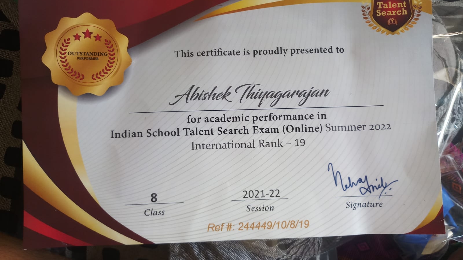 -15 | ISTSE – Online Exam | Silver medal + air 19 | 2021-22(Class 8) | Clickere,Clickhere | |