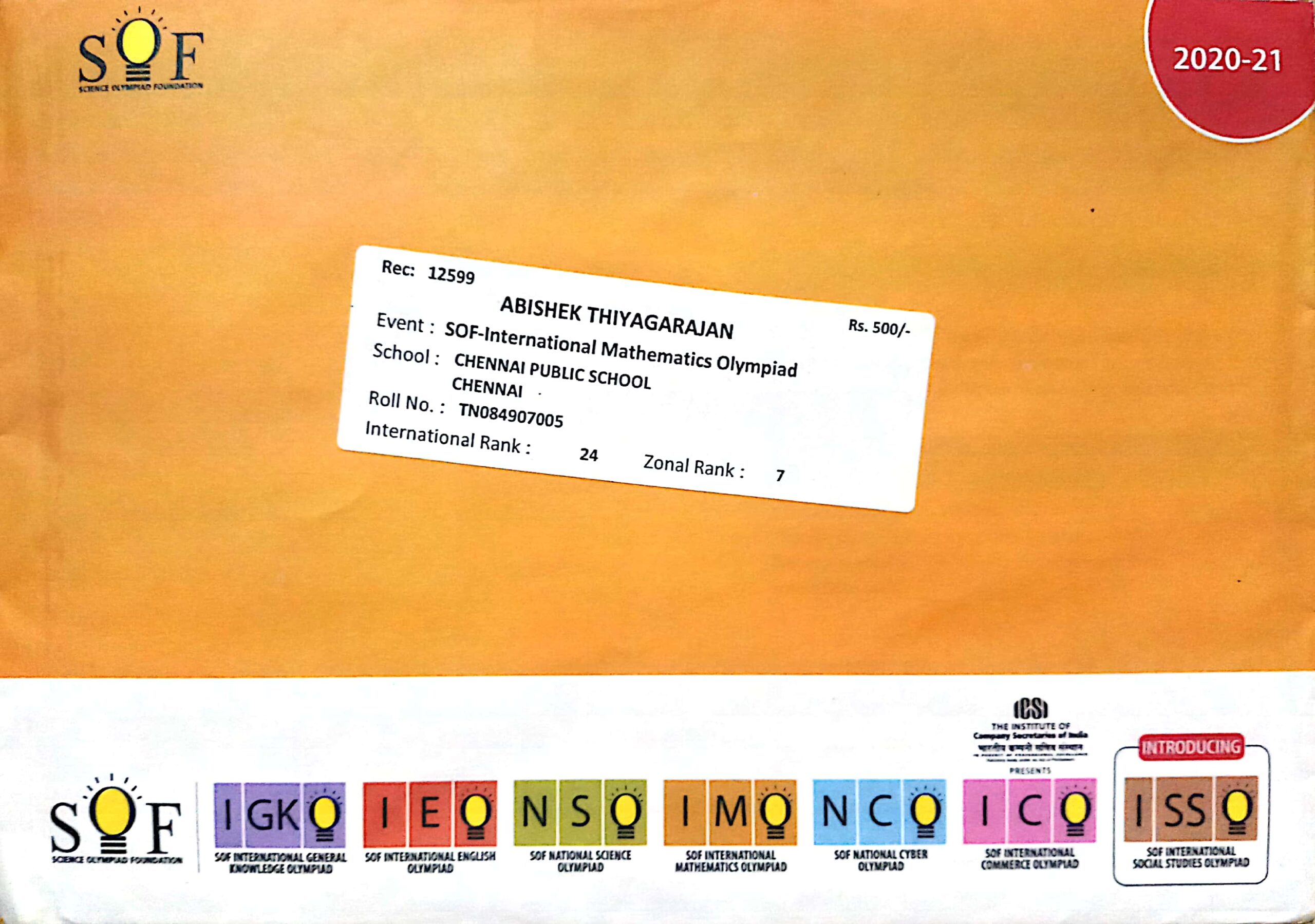 -3 | Photo published on SOF site | My awards photo was published on SOF website as I was a zonal ward winner in SOF IMO | 2020-21 was the year I wrote the exam, 2021-22 was when award received and photo published on site | Links for SOF gallery:- Clickhere | Clickhere (This is a pdf version of the webpage) |