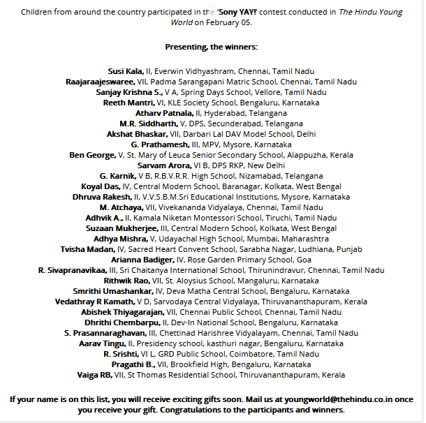 2 | Gifts from Young World – Sony Yay | VR Set – Virtual Reality | 2021 | Answering questions/puzzles based on a cartoon from Sony Yay and gifts were related to that cartoon | Clickhere,Clickhere, Clickhere |