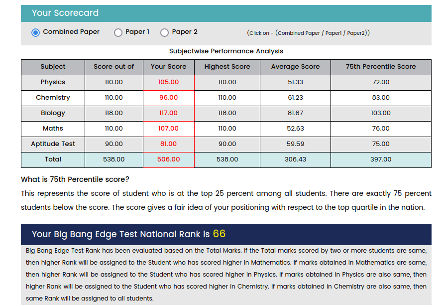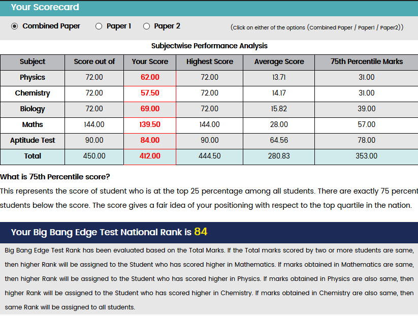7 | BBE Results | All India Rank 84 | 2020 | 412/450 marks BIG BANG EDGE TEST | Clickhere |