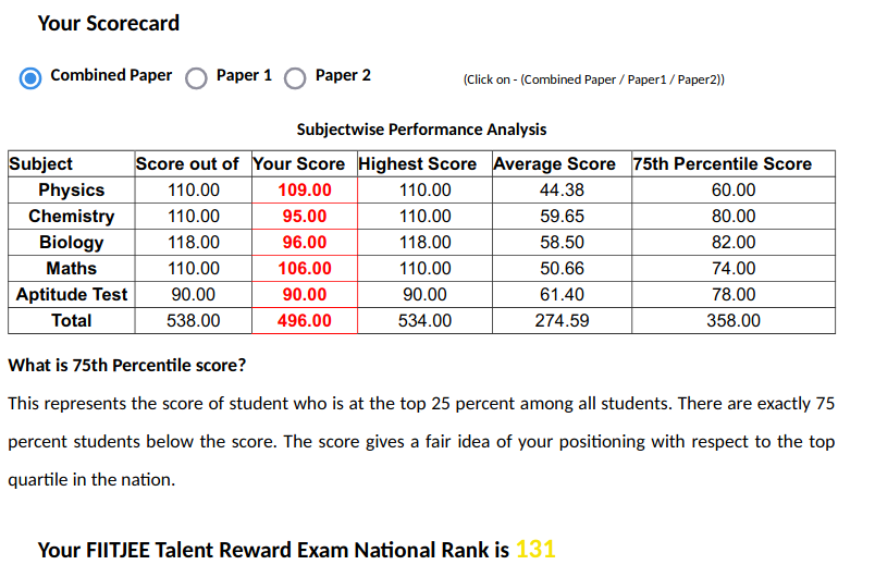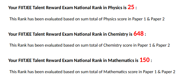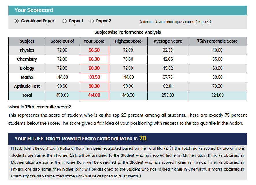 6 | FTRE Results | All India Rank 70 | 2020 | 414/450 marks, FIITJEE TALENT REWARD EXAM | Clickhere |