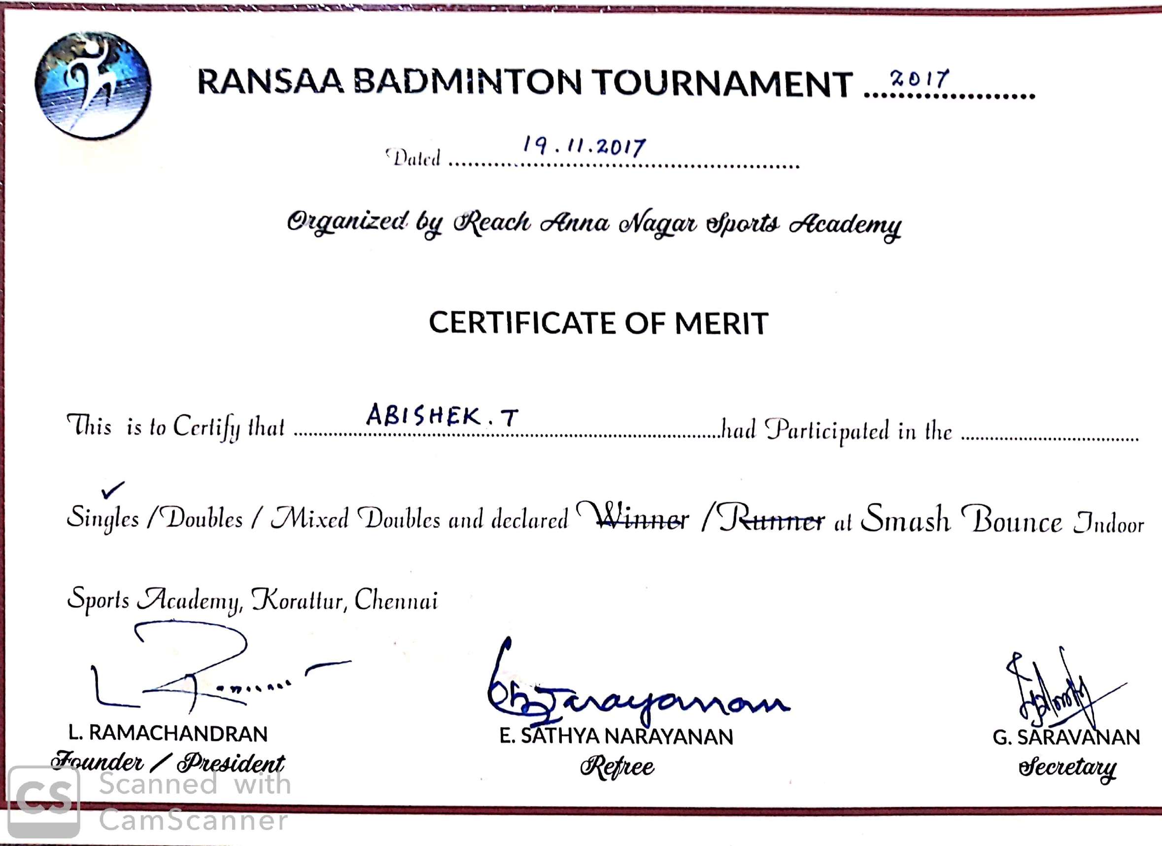 16 | Badminton | Ransa Tournament | 2017 | Participant in the Badminton tournament | Clickhere |