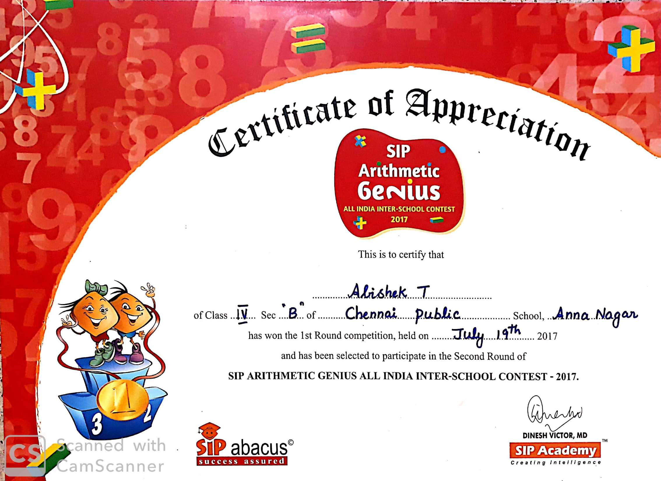 17 | SIP Arithmetic Genuis | Winner | 2017 | Abacus maths exam | Clickhere |