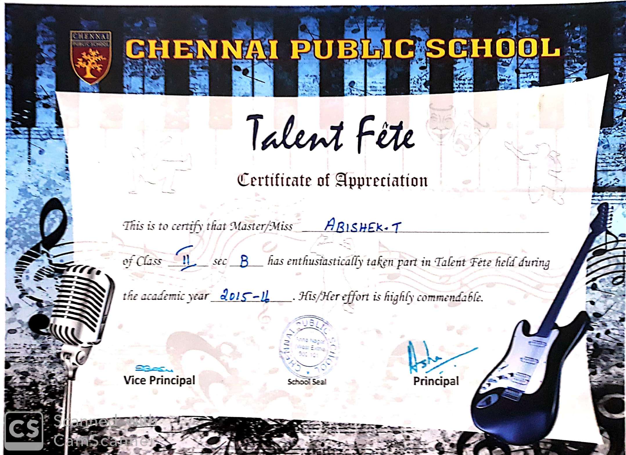 21 | Talent Fete | First Place | 2015 | I spoke on the Topic -“Judge me not” in my school | Clickhere |