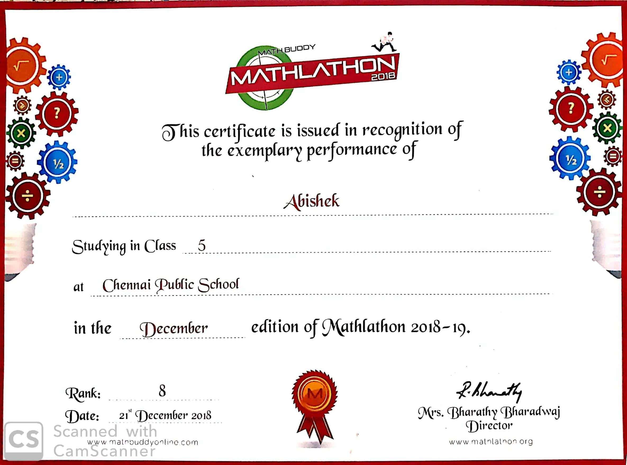 15 | Mathalathon – | All India Rank 8 | 2018-19 | National level maths olympiad conducted by Mathbuddy | Clickhere |