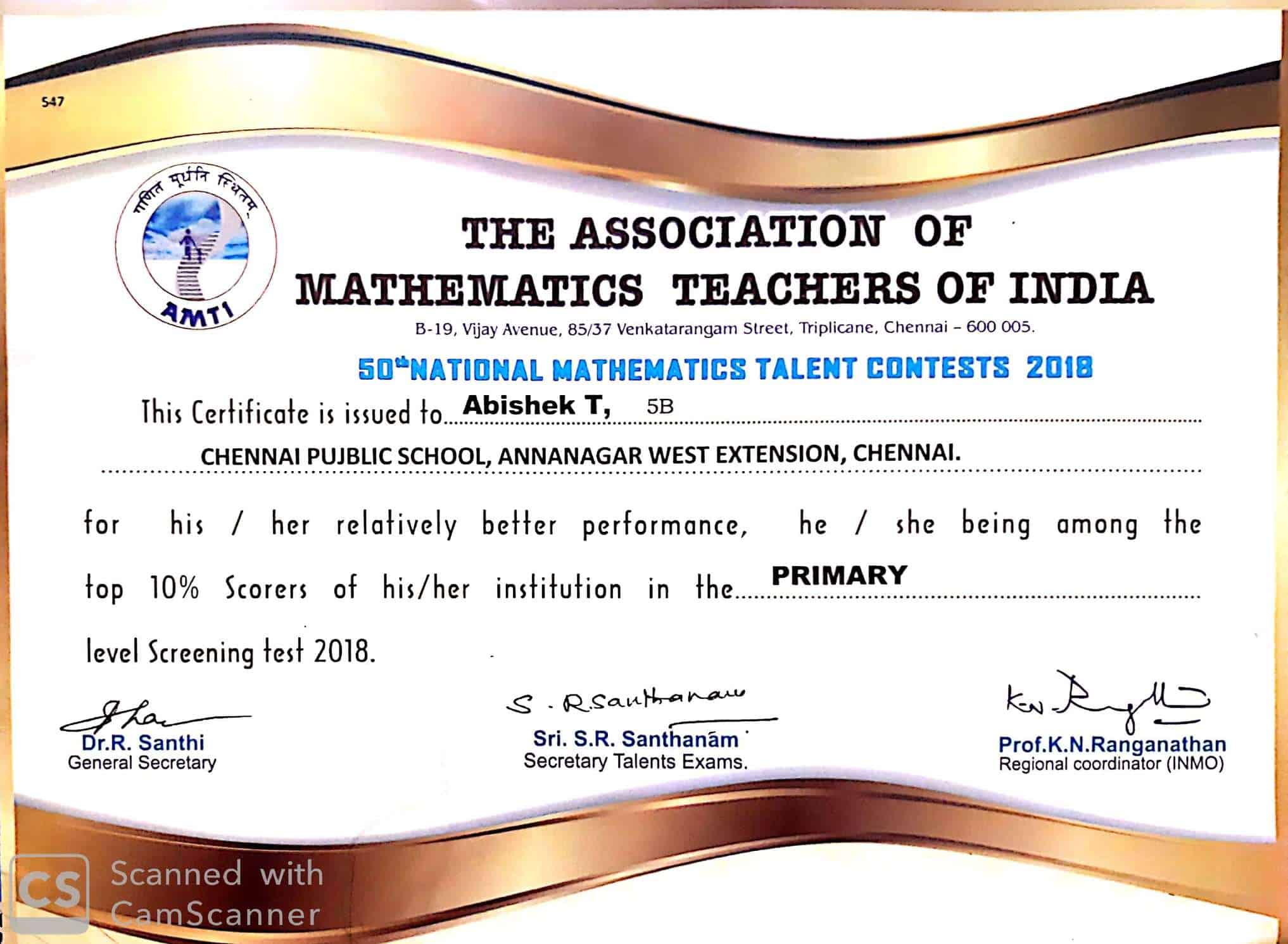 11 | AMTI Results | Cleared 1st Level | 2018 | The Association of Mathematics teachers of India conducts the NMTC exam. | Clickhere |