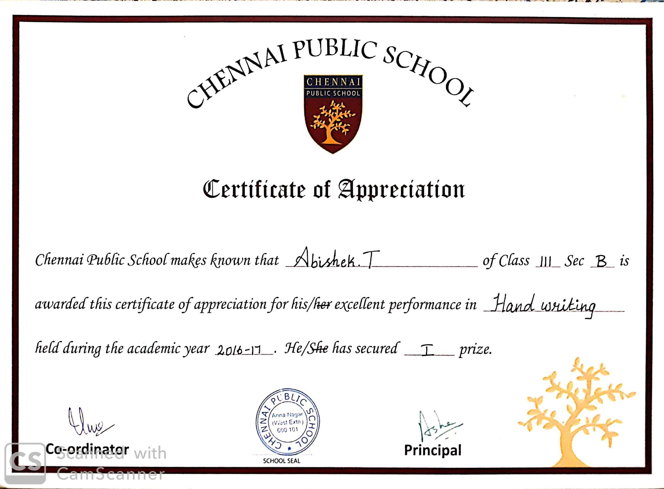 19 | Hand Writing | 1st Place | 2016-17 | Hand writing competition in my school | Clickhere |